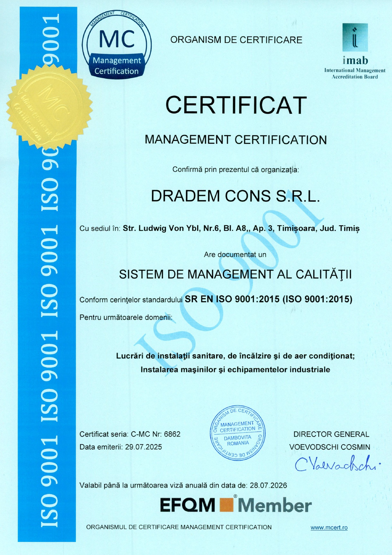 Suntem mândri să anunțăm că Dradem Cons a obținut certificările ISO 9001:2015 și ISO 14001:2015, recunoașteri internaționale care reflectă angajamentul nostru ferm față de calitate și protecția mediului.